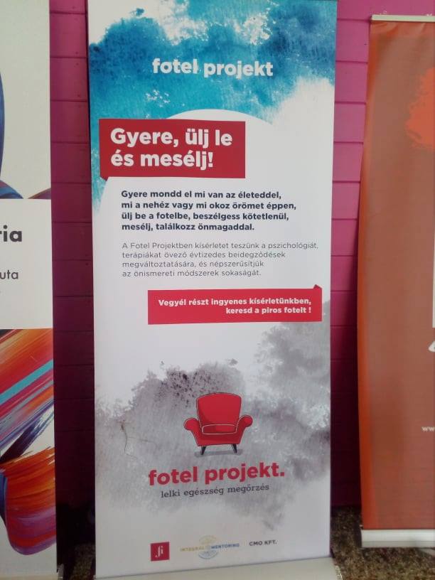A Fotel Projekt. elnevezésű kezdeményezésbe kapcsolódtam be, ami a segítő beszélgetések népszerűsítést tűzte ki céljául. Van néhány olyan, számomra fontos ügy, amihez nagyon szívesen adom az időmet, energiámat, szakértelmemet, figyelmemet, térítésmentesen is, hogy ezzel hozzájáruljak valami általam értéknek tartott építéséhez. A segítő beszélgetések destigmatizációja pont ilyen.